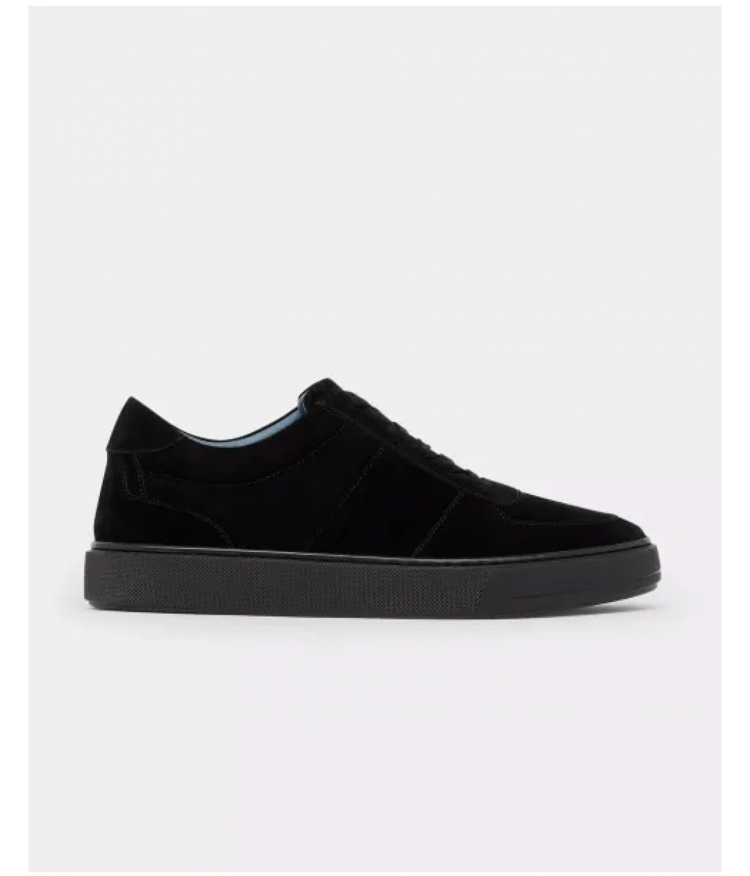 Black suede enrico cupsole trainer. Closed lacing with 6 eyelets.Suede upper with punch hole and seam detailGraduated cupsole with branded heel tab and tongue with a tonal rubber sole.