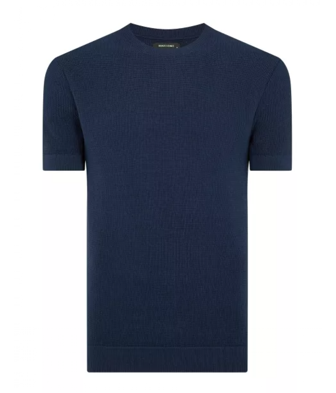 Navy slim fit short sleeve knitted crew neck tee in all over micro waffle knit structure.- Waffle knit structure- Ribbed collar, cuff and hemIf you prefer an easier fit, we recommend sizing up for this garment.