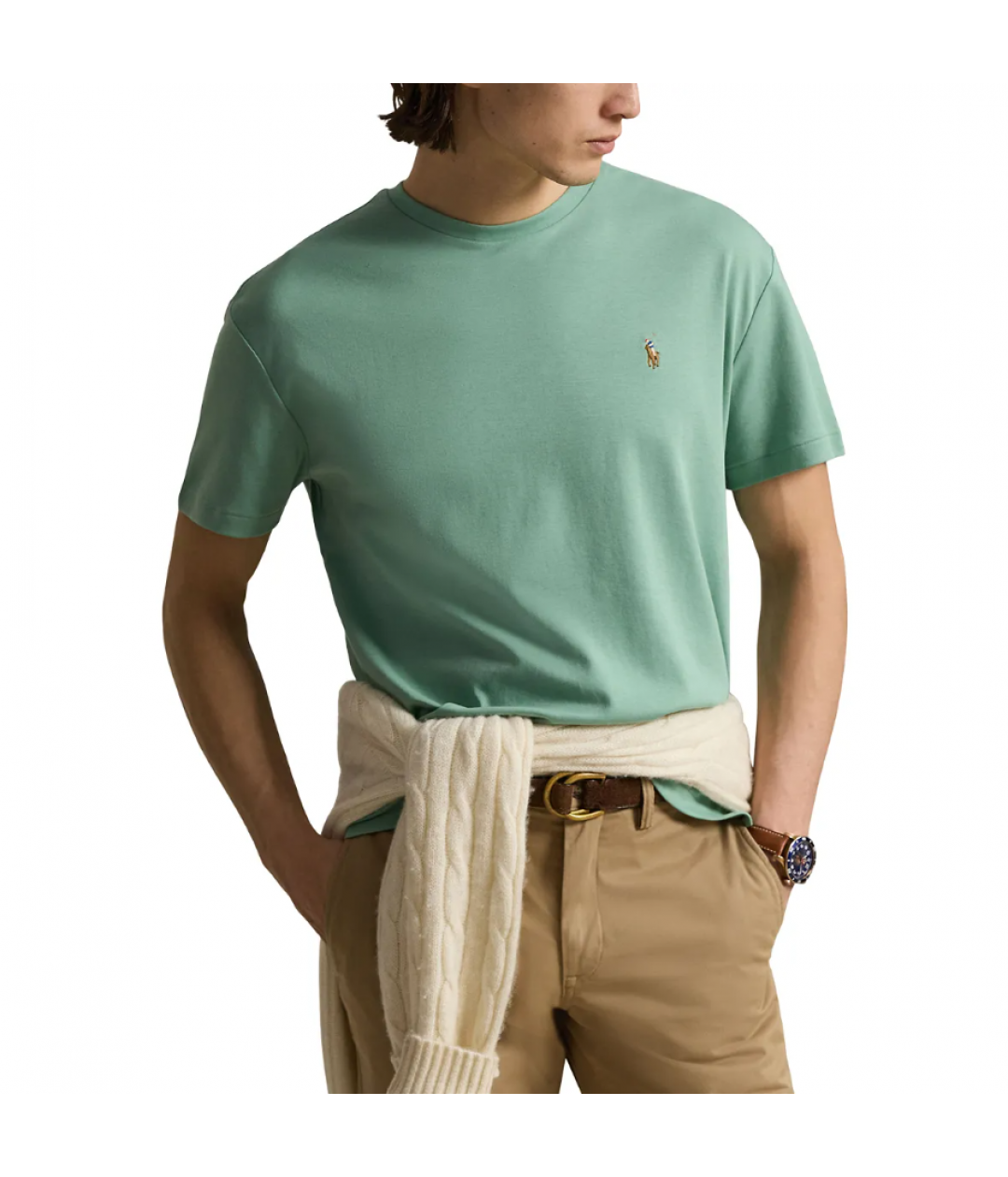 Men's slim-fit T-shirt in pure mint green cotton jersey, with a ribbed neckline and embroidered Polo Ralph Lauren logo on the front.- Crew neck design- Short sleeves- Signature details